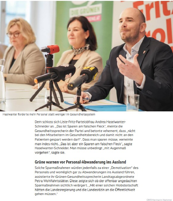 Haselwanter-Schneider warnt vor gravierenden Folgen. „Die Patienten bekommen heute schon kaum einen Termin für Untersuchungen und Operationen. Wenn nun drei Monate lang Stellen unbesetzt bleiben müssen, wird sich diese Situation noch zusätzlich dramatisch verschärfen“, zeigt Haselwanter-Schneider kein Verständnis für diese Maßnahme. „Auch das verbleibende Personal wird dadurch massiv unter Druck geraten. Nach dem Auseinanderdividieren des Pflegepersonals in Alt- und Neuverträgen der nächste Affront gegenüber dem Personal. Das noch zur Verfügung stehende Personal muss noch mehr arbeiten. Und so besteht die reale Gefahr, dass uns weitere Mitarbeiterinnen und Mitarbeiter aufgrund der Überbelastung verlassen. Derartige nicht durchdachte Entscheidungen zerstören die Motivation. Das ist brandgefährlich.“