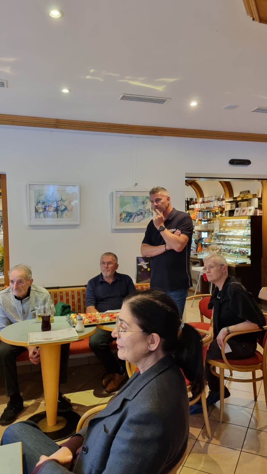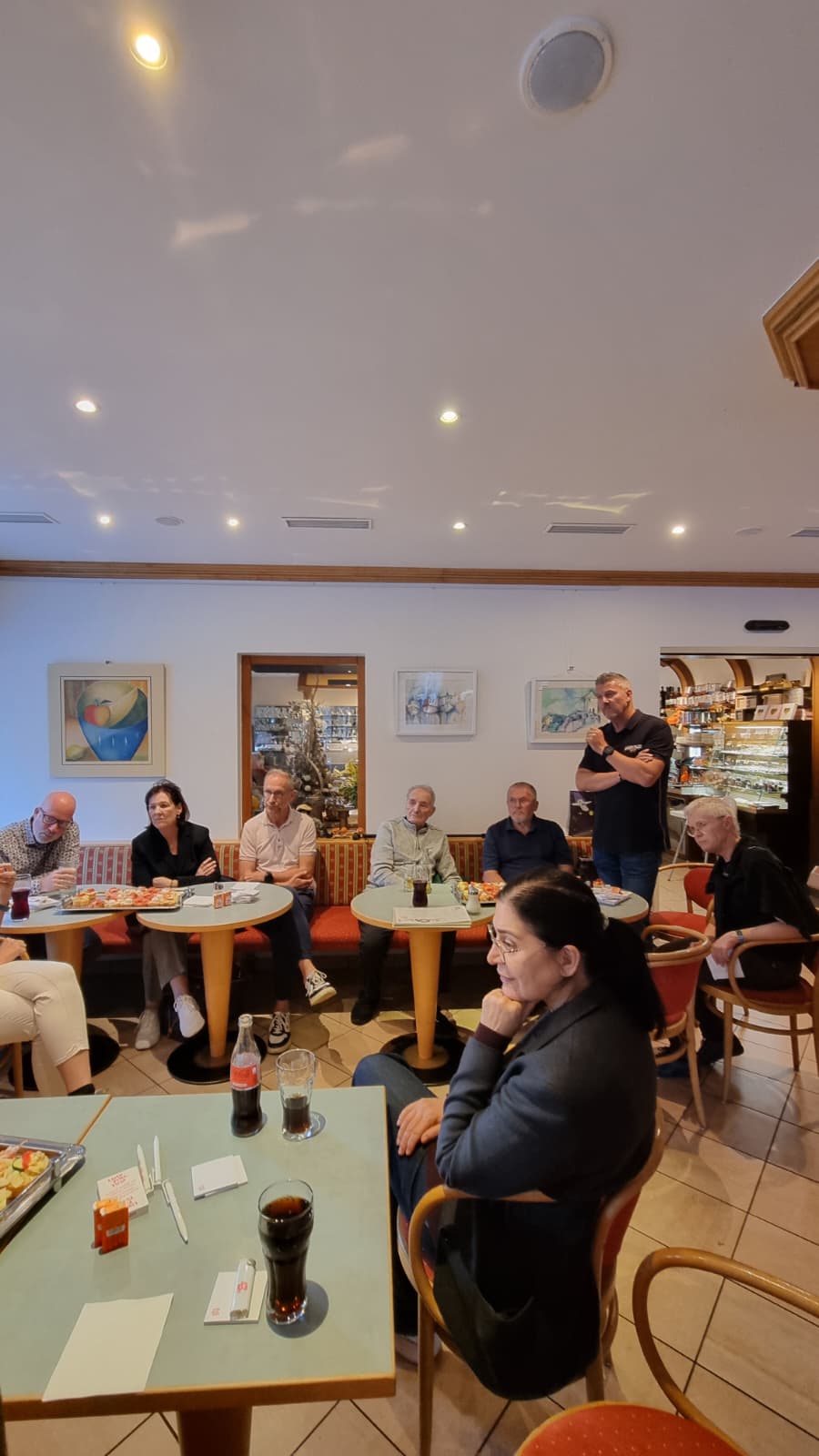 Im Anschluss an die interessante Besichtigung trafen wir uns in Wolfis Tortenecke zu einem gemütlichen Get-together und einer Nachbesprechung. Bei köstlicher Verpflegung und in angenehmer Atmosphäre konnten wir die Eindrücke des Nachmittags vertiefen und spannende Gespräche führen.