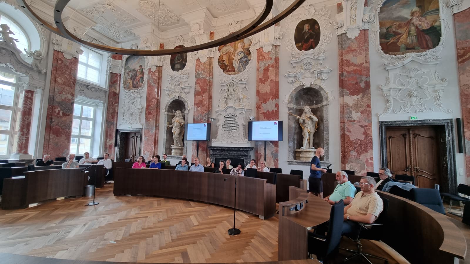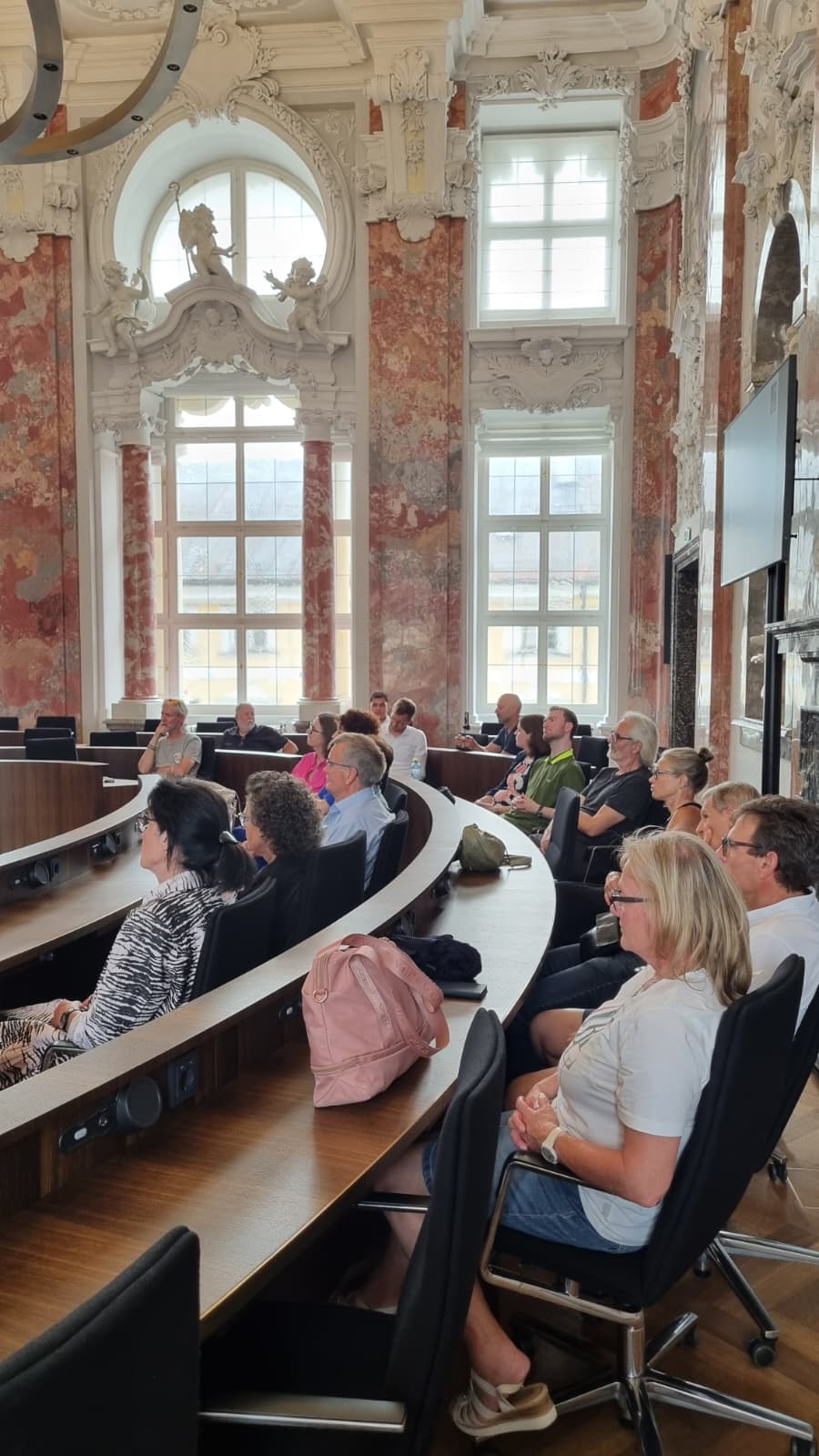 Ein besonderes Highlight des Abends war die Führung durch den Sitzungssaal des Landtages, die von Herrn Sprenger geleitet wurde. Mit viel Fachwissen und anschaulichen Details vermittelte er den Gästen die Abläufe und Hintergründe der Landtagssitzungen. Ebenfalls bereichernd war der Vortrag von MMag.a Dr.in Monika Aichholzer-Wurzer, Direktorin des Landesrechnungshofs, die den Gästen umfassend die Aufgaben und Arbeitsweise der Institution näherbrachte.