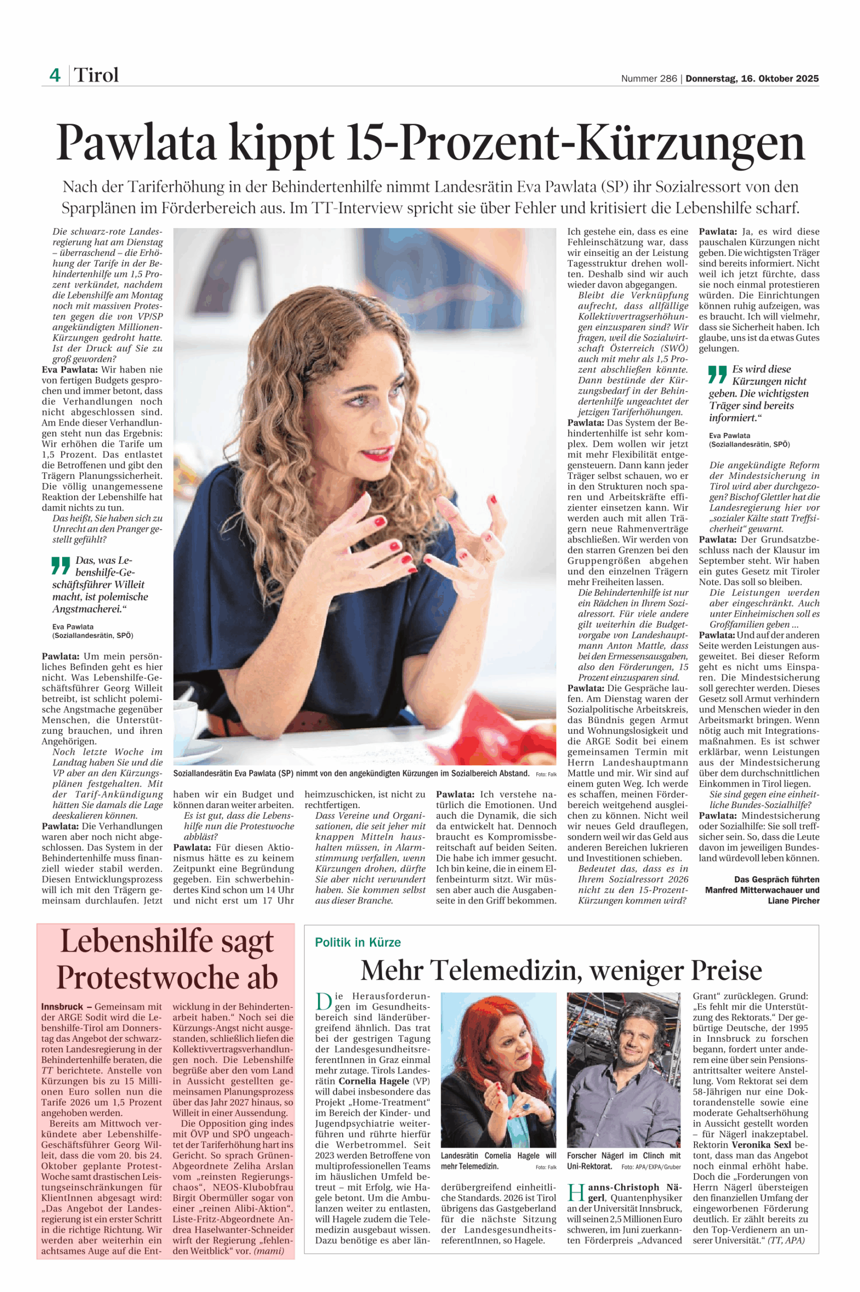 Für die Liste Fritz darf die Kehrtwende keine kurzfristige Beruhigungsmaßnahme bleiben. Es braucht eine langfristige Absicherung der Behindertenhilfe, die sich am realen Bedarf orientiert. Dazu gehören auch faire Löhne für Fachkräfte und ausreichend finanzielle Mittel für Einrichtungen, die längst am Limit arbeiten. „Menschen mit Behinderung und die engagierten Fachkräfte verdienen Sicherheit, Respekt und eine Politik mit Weitblick, keine Landesregierung, die erst auf öffentlichen Druck reagiert“, so Haselwanter-Schneider abschließend.